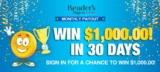 Enter now the Reader's Digest 2021 Monthly Payout Contest, in it, you will get the chance to Win $1,000 every month. Contest is open to legal residents of ...
