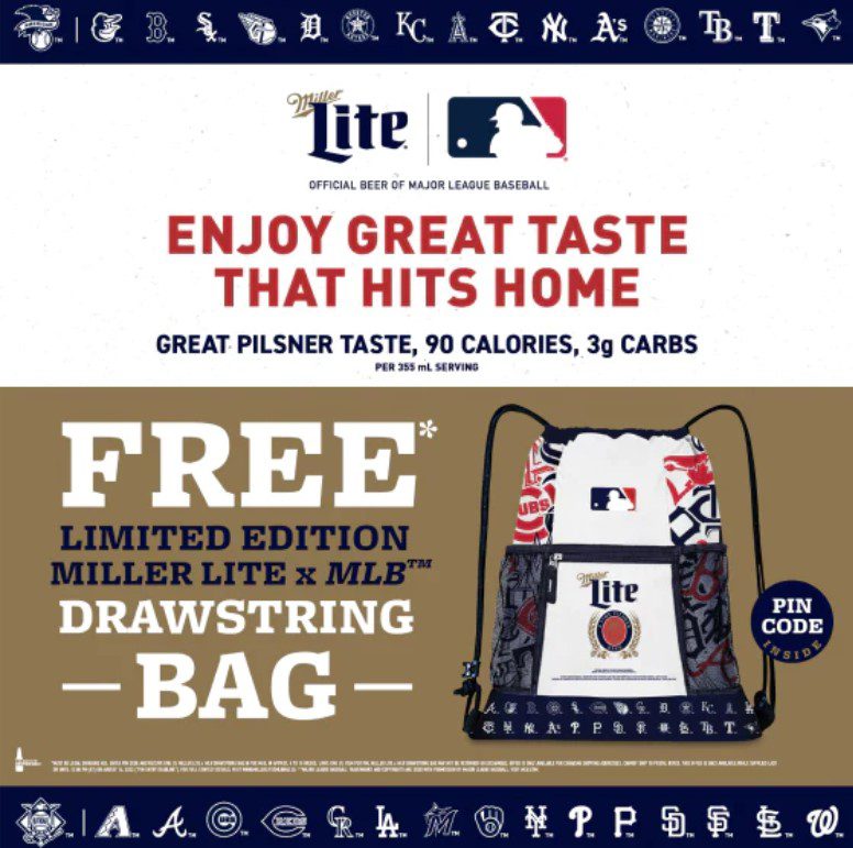 Enter now the Miller Lite x MLB Drawstring Bag Promotion, in it, you can win free Drawstring Bags.